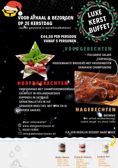 - **Vier Kerst 2025 met een luxe kerstbuffet bij u thuis van Restaurant De Kroon in Rijssen**